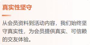 摒弃婚介暴利,以低费用的模式,让更多单身朋友能够轻松加入,享受高质量交友服务。从会员资料到活动内容,我们始终坚守真实性,为会员提供真实、可信赖的交友体验。